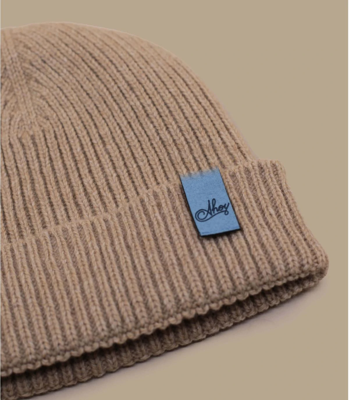 Bonnet en laine fabriqué en France dans la région Rhone Alpes et personnalisé dans notre Atelier d’Annecy, à partir de matières recyclées. Ahoy gravé sur patch bleu.