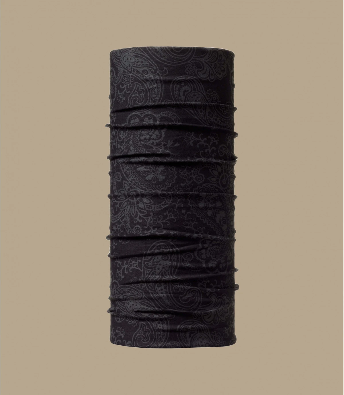 Le Buff de toujours en tissu stretch multifonctionnel, décoré d’un discret imprimé indien type bandana en gris sur gris foncé. Ce modèle polyvalent est conçu pour vous maintenir au chaud tout en évacuant l’humidité et en prévenant la formation de mauvaises odeurs.