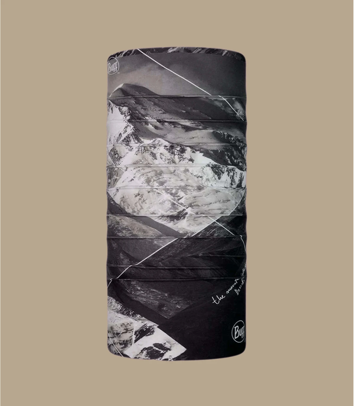 Vous ne regretterez jamais d’acquérir un Buff, un accessoire extrêmement polyvalent ! Fabriqué en Espagne à partir de bouteilles recyclées, ce modèle de la collection Original est superbe avec son imprimé gris de sommets de montagne.