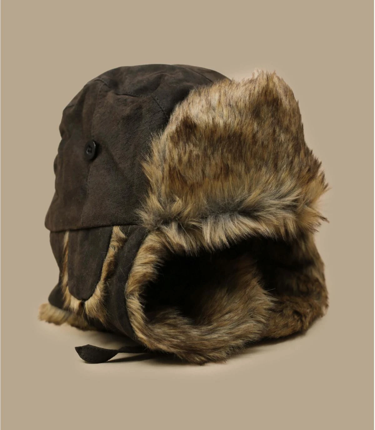 Avec ce chapeau traditionnel des pays de grand froid, vous êtes prêt(e) pour affronter l’hiver. Cette chapka en cuir viielli de couleur chocolat est doublée et munie de cache-oreilles, avec un cordon d’attache sous le menton.