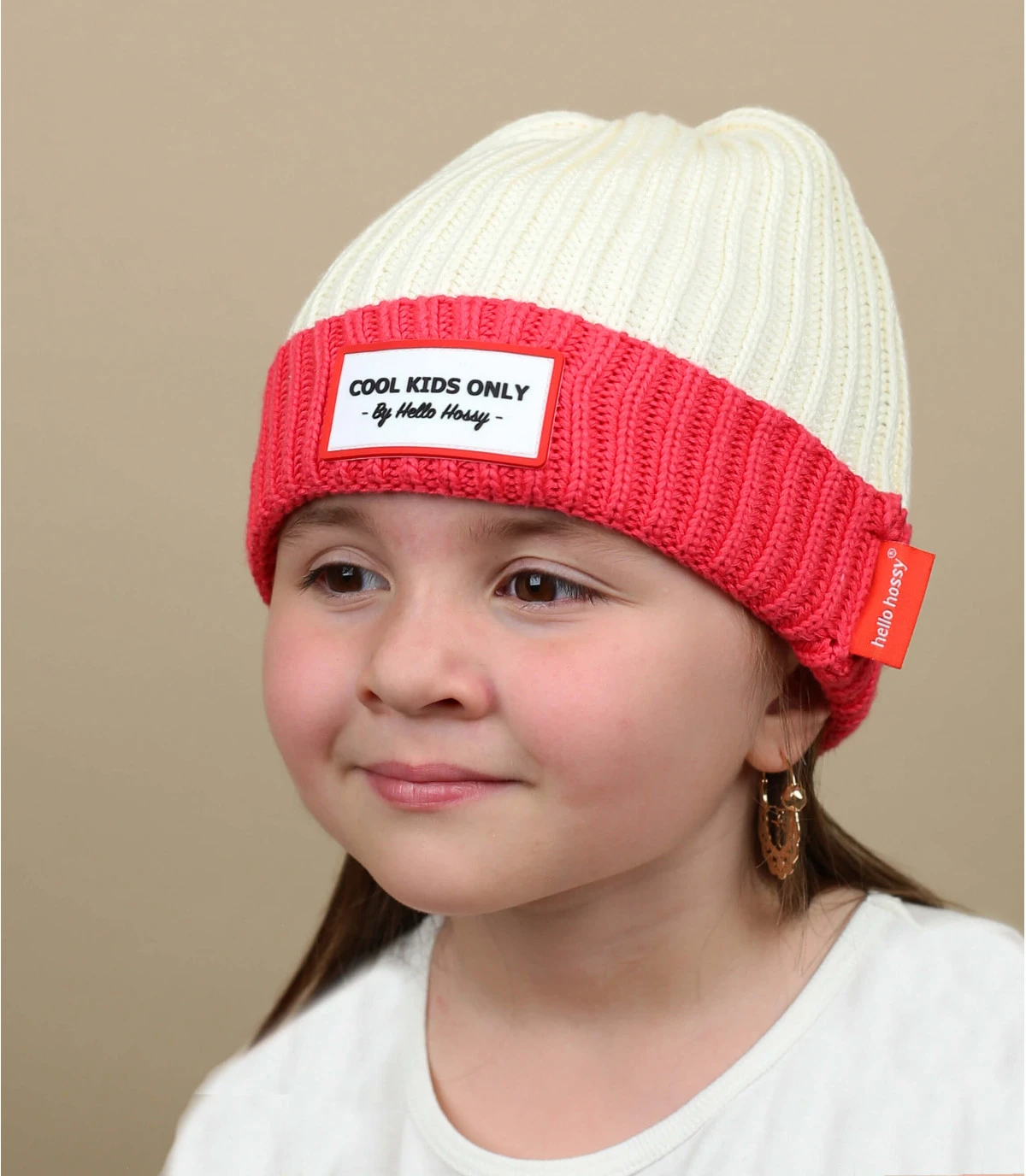 Vive la tendresse, avec ce moelleux bonnet de coton biologique pour enfant, en tricot à côtes écru relevé d’un revers rose. Complété d’une étiquette tissée Cool Kids Only, il plaira à tous.