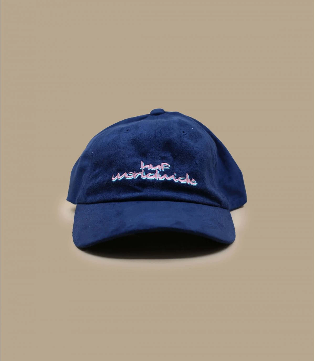 Avec son toucher velouté et son logo brodé Huf Worldwide, cette casquette Huf bleue à visière courbée en cuir suédé se distingue. Elle s’ajuste au dos par un système strapback avec une belle boucle en métal.