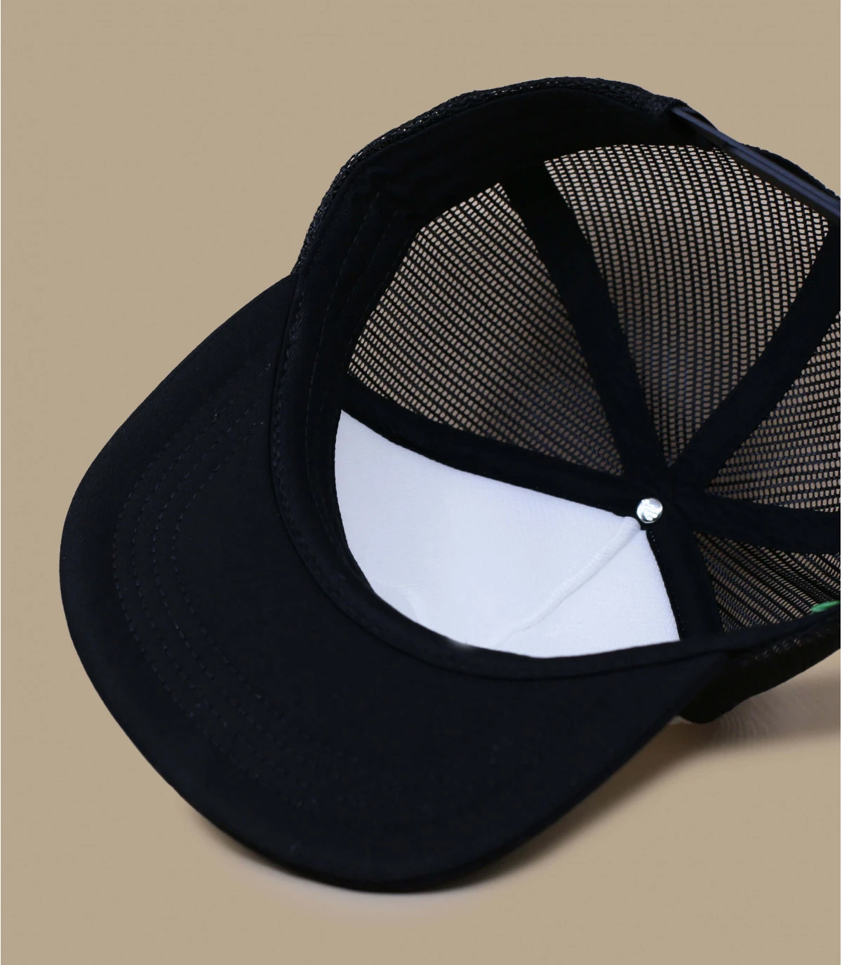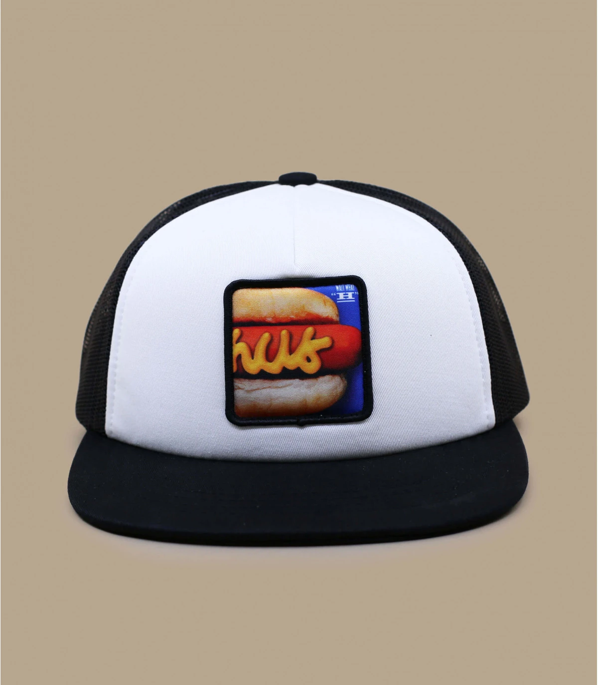 L’été, la casquette trucker est hyper confortable et toujours aussi tendance. Ce modèle a un tissu mesh noir et une visière noire. A l’avant, un patch origianl met en avant la culture américaine du Hot Dog.