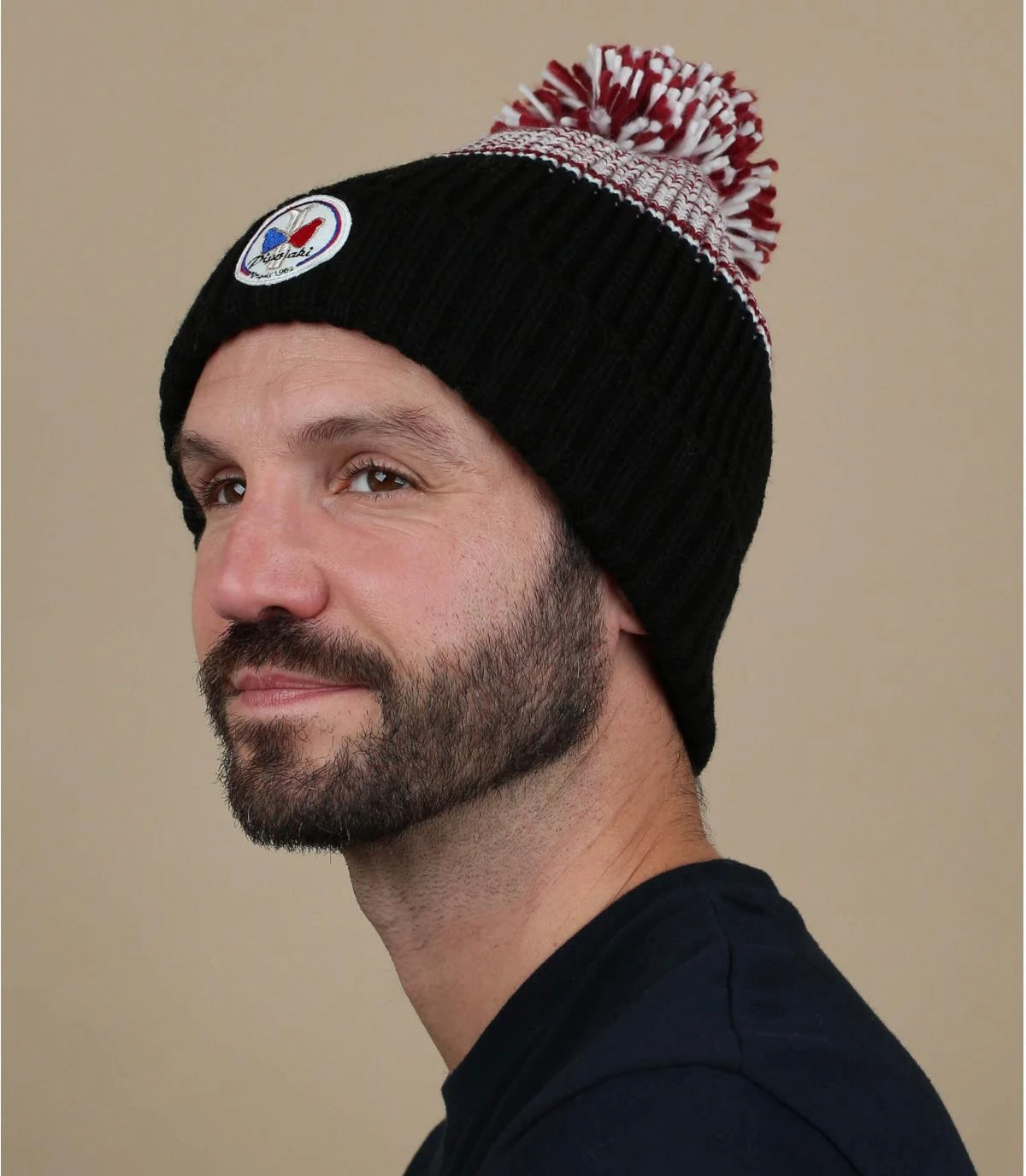 Ce sympathique bonnet noir à revers de la marque française Pipolaki affiche une partie rouge chinée de blanc sur le haut, avec un pompon assorti, qui lui donne une fraicheur dynamique. Ce modèle est doublé en polaire douce pour bien vous abriter du froid.