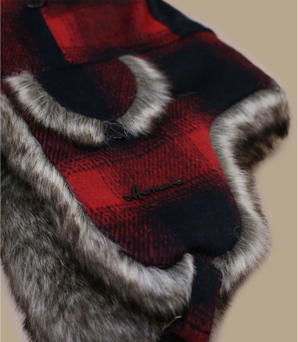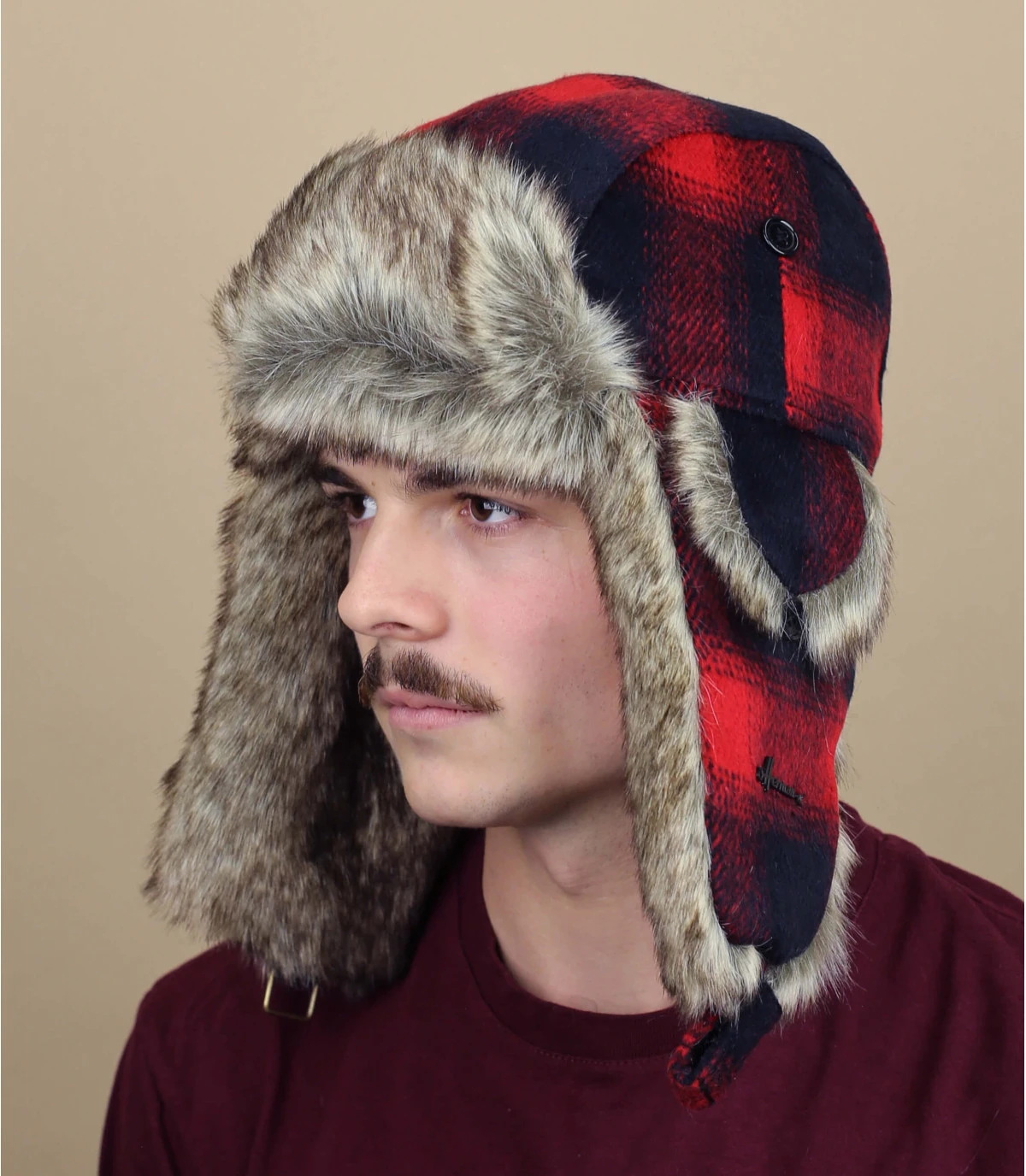 Cet hiver, portez cette chapka chaude en fausse fourrure qui vous donnera un look de bûcheron du grand nord. Elle porte un motif à carreaux rouge et noir, et est munie de cache-oreiles que vous pouvez attacher au sommet de la tête.