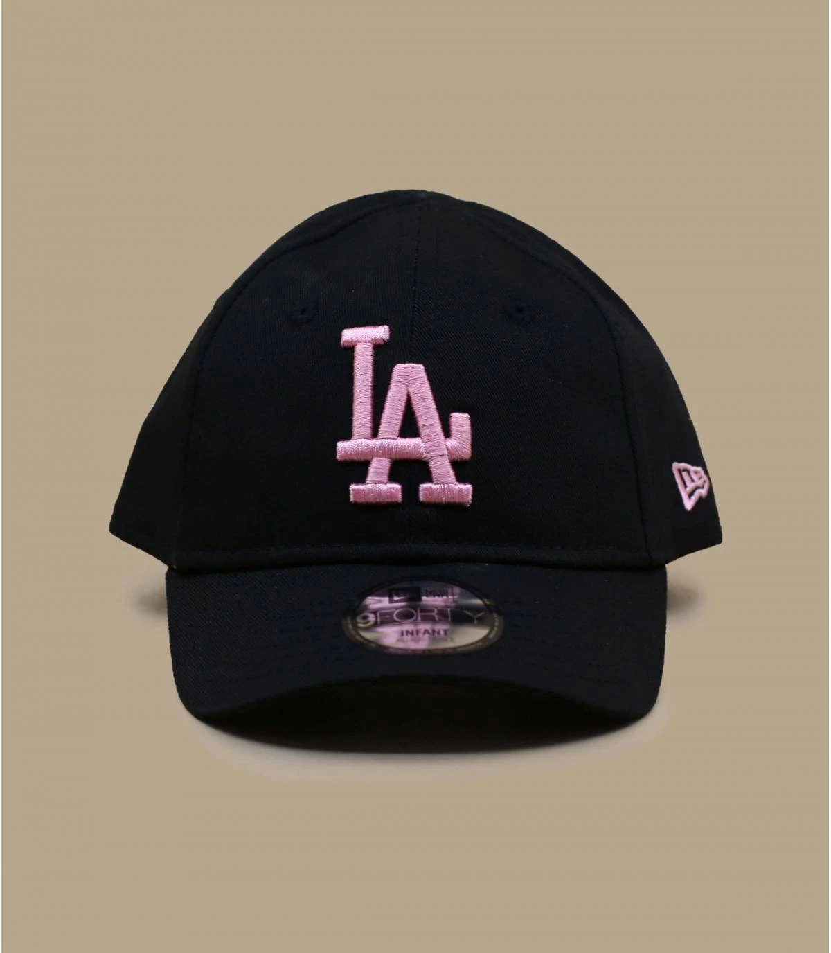 Cette casquette bébé noire est décorée sur l’avant d’une broderie en relief des initiales LA en rose pâle. Elle est équipée d’un empiècement élastiqué au dos pour assurer un confort durable.