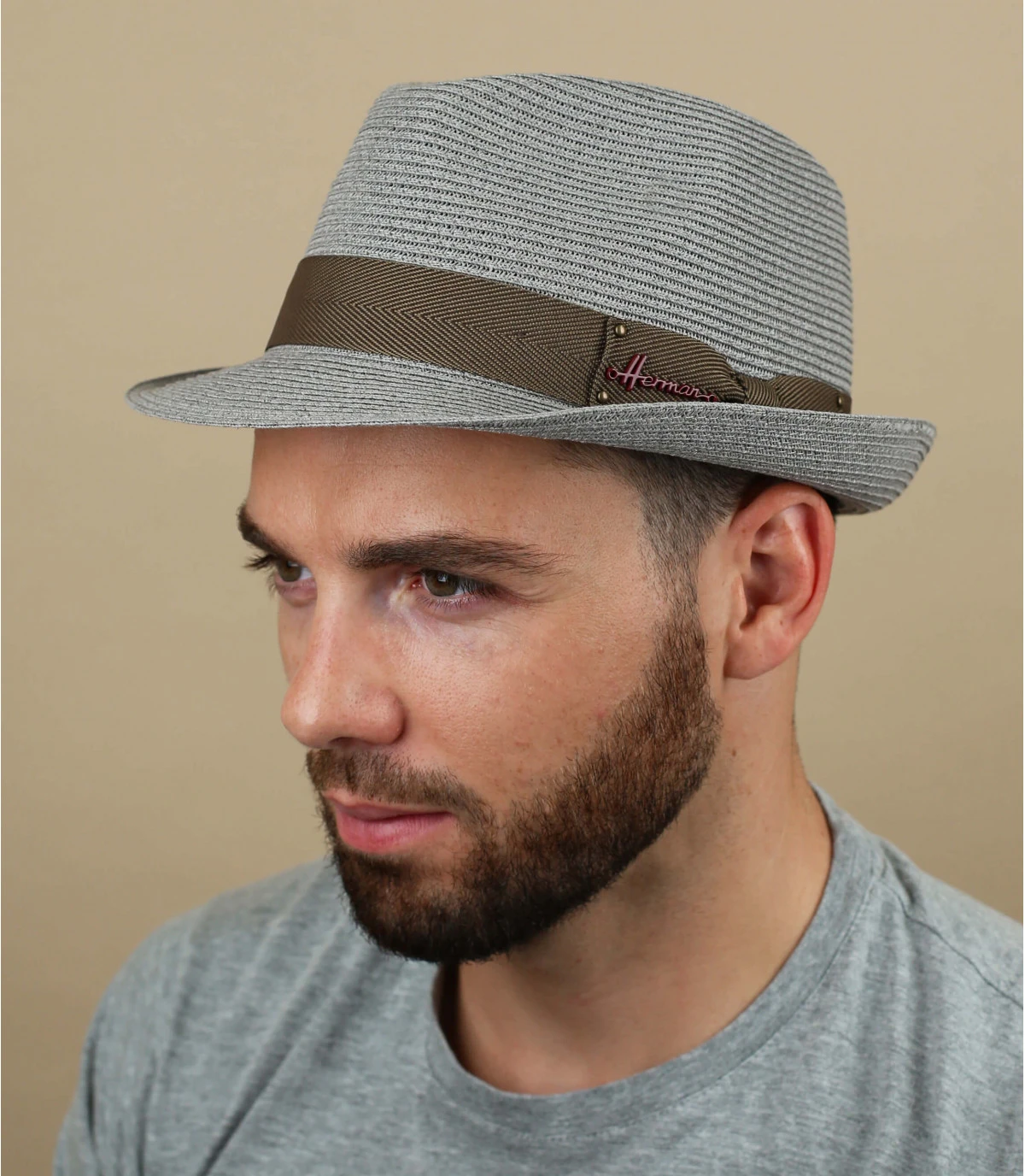 Misez sur le gris perle cet été, offrez-vous ce ravissant chapeau trilby à l’allure très élégante. Il est relevé d’un ample galon beige, décoré d’un pins en métal assorti, au nom de la marque spécialisée qui nous propose ce modèle, Herman.