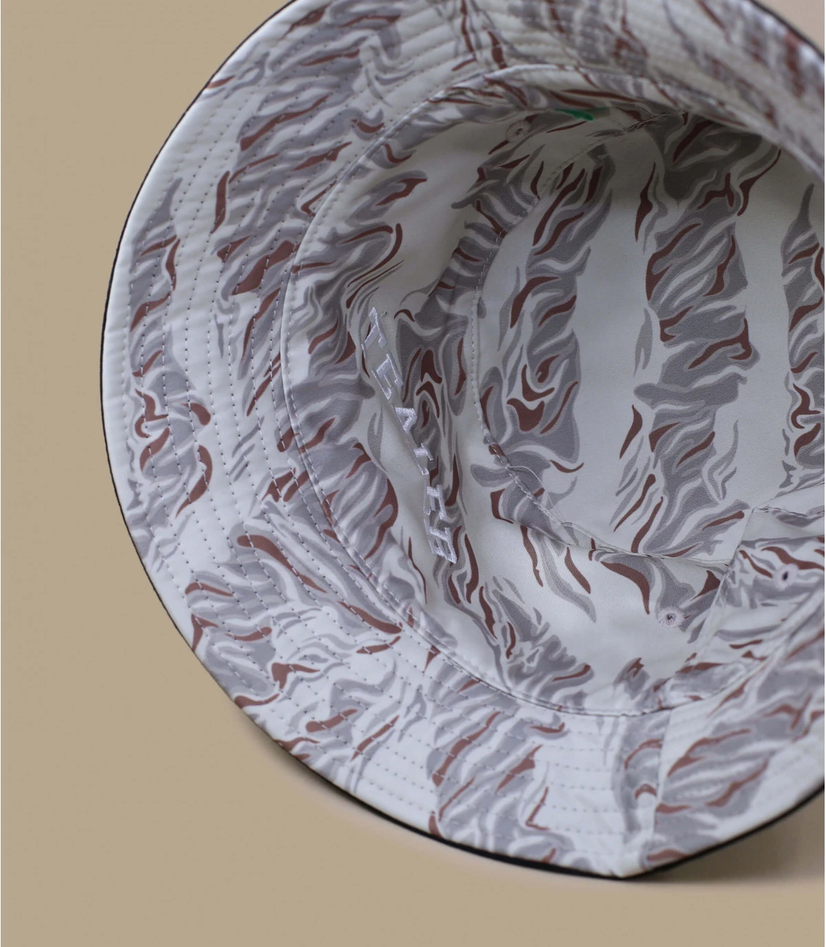 Retrouvez le motif camouflage sable sur ce bob réversible coton. Idéal pour l’été, il gardera votre tête à l’abri du soleil. Changez-le selon l’humeur : flashy pour une soirée, ou noir pour plus de classe.
